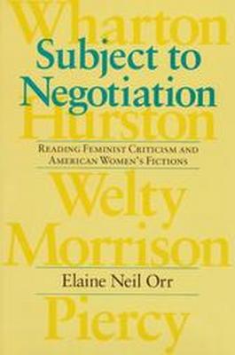Description: In Subject to Negotiation, Elaine Neil Orr proposes negotiation as both a state of consciousness and a significant movement for women writers as well as feminist critics. Challenging the "subversive" model of feminist criticism, she argues for the importance of negotiation for feminist practice within a plurality of critical positions and identities. Without claiming the final word -- indeed calling for more words on the subject -- Orr sketches an empirical method for a negotiating feminist criticism and then in successive chapters demonstrates the method at work.